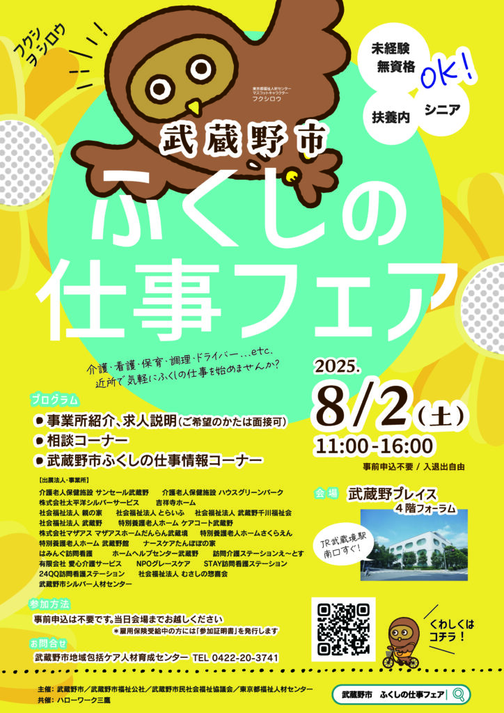 主催:武蔵野市、武蔵野市福祉公社、武蔵野市民社会福祉協議会、東京都福祉人材センター